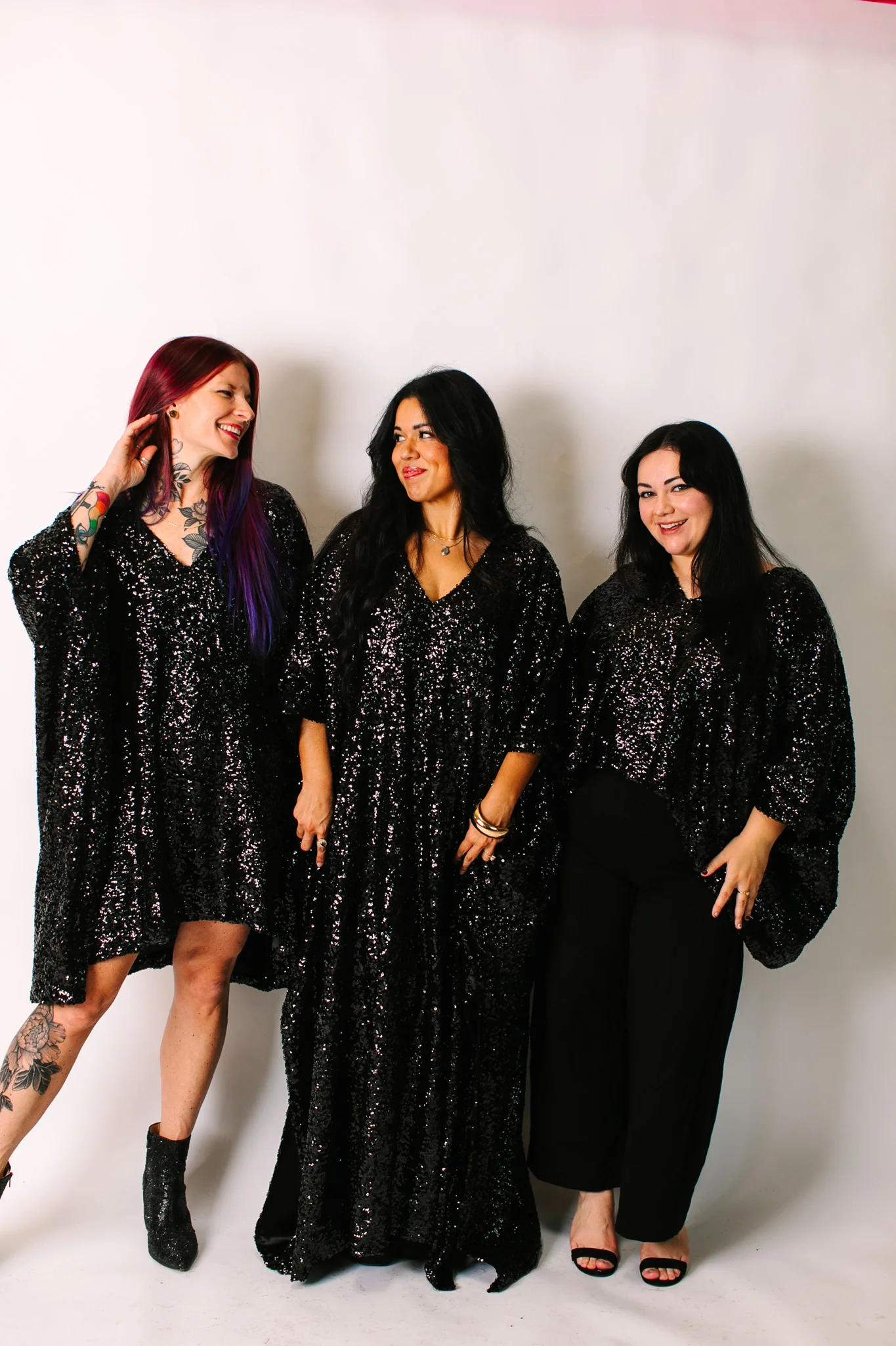 Be the life of the party in this long sequin caftan! This show-stopping caftan is adorned with shimmering sequins that will catch the light and turn heads. With a flowy, relaxed fit, it combines style and comfort. The long length ensures you'll bring the fashion drama, while the sequins add a touch of glamour to your look. These comfortable sequins on mesh are lined for max comfortability.