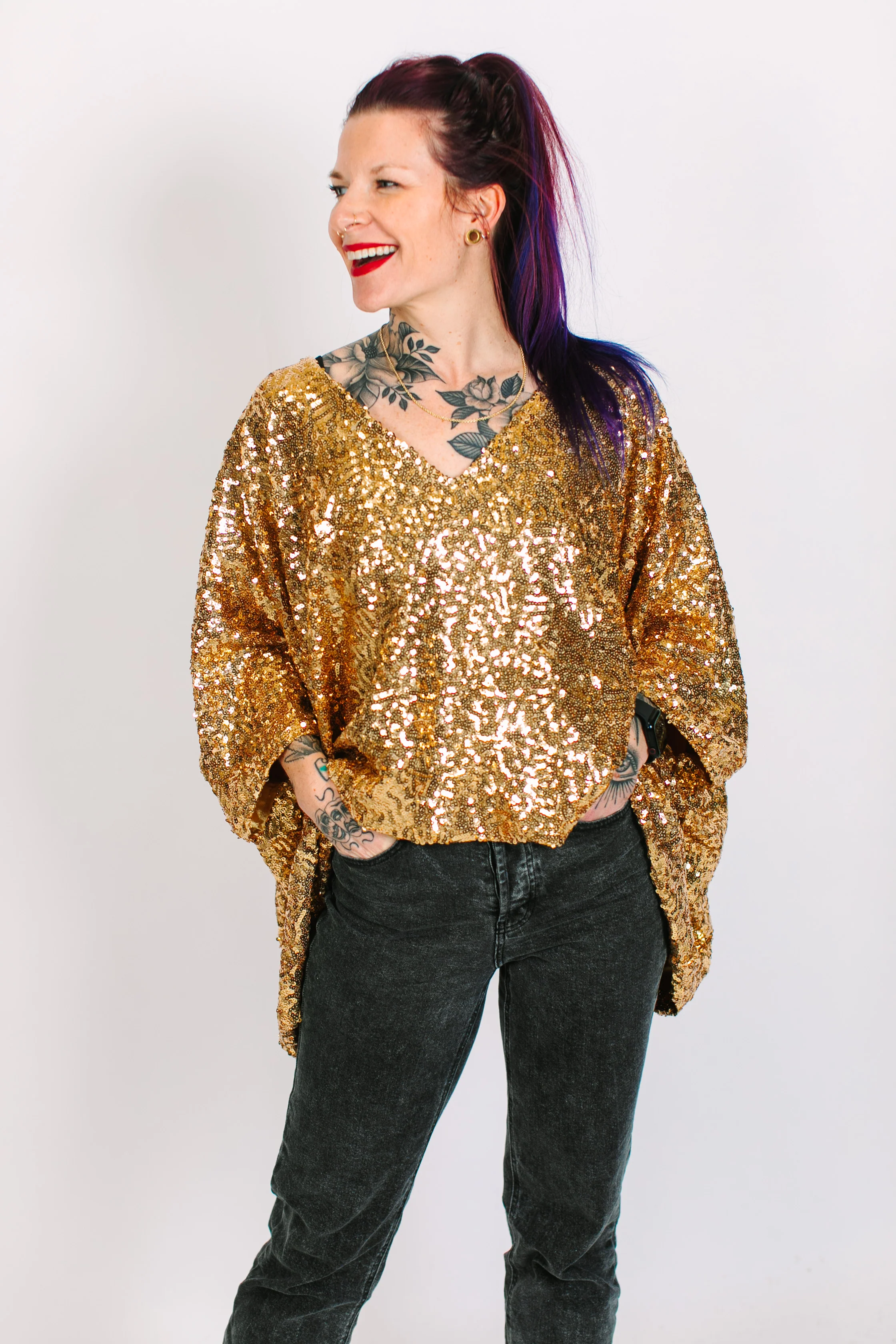 Be the life of the party in this sequin tunic! This show-stopping caftan is adorned with shimmering sequins that will catch the light and turn heads. With a flowy, relaxed fit, it combines style and comfort, and you can pair it perfectly with your favorite pants, skirts, or jumpsuit. The short length ensures makes this style more playful and fun, while the sequins add a touch of glamour to your look. These comfortable sequins on mesh are lined for maximum comfort.