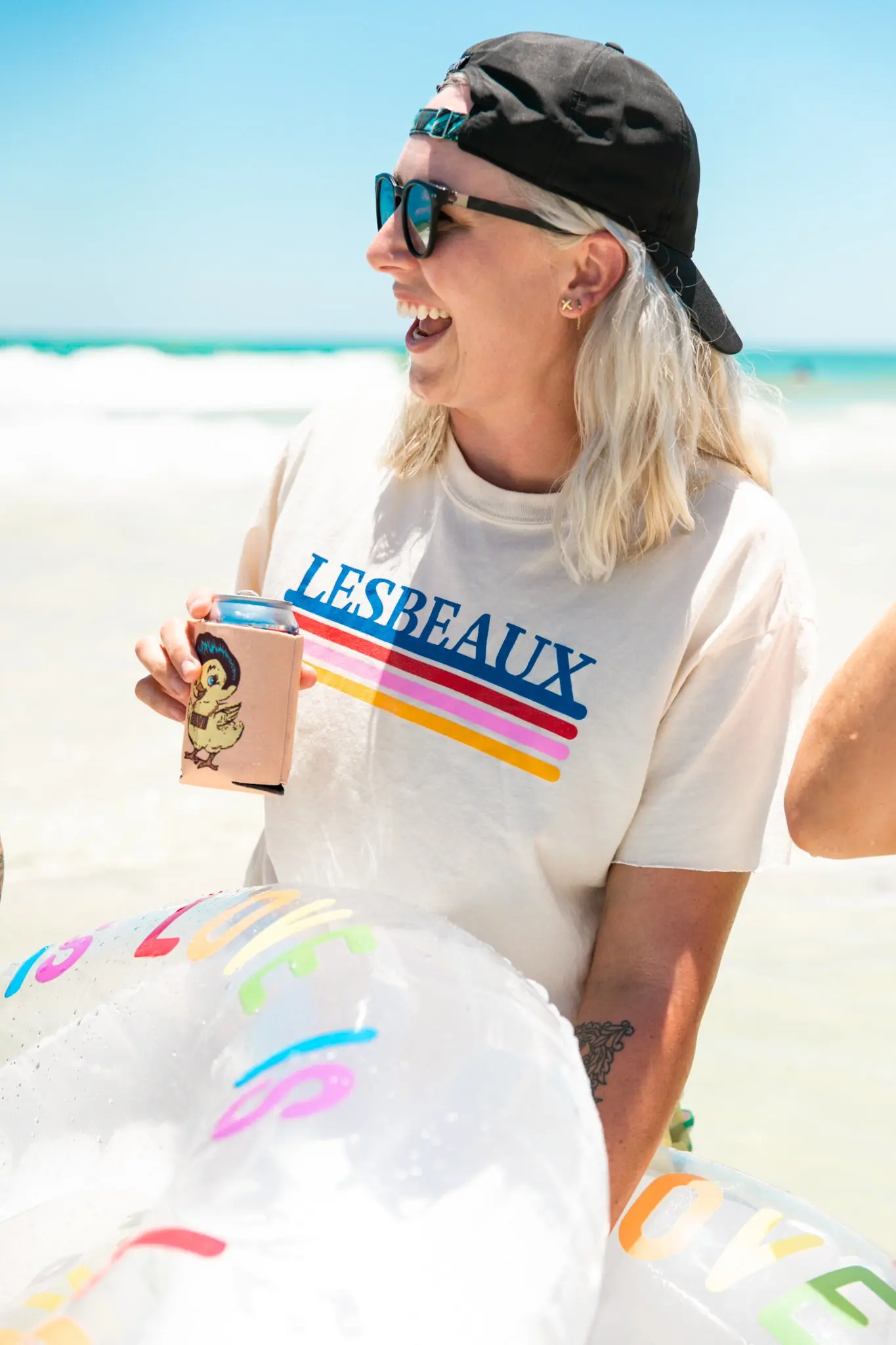 "Lesbeaux" screen-printed ivory shirt. Let the people know who the Lesbeaux in town is really is with this fun and colorful shirt.