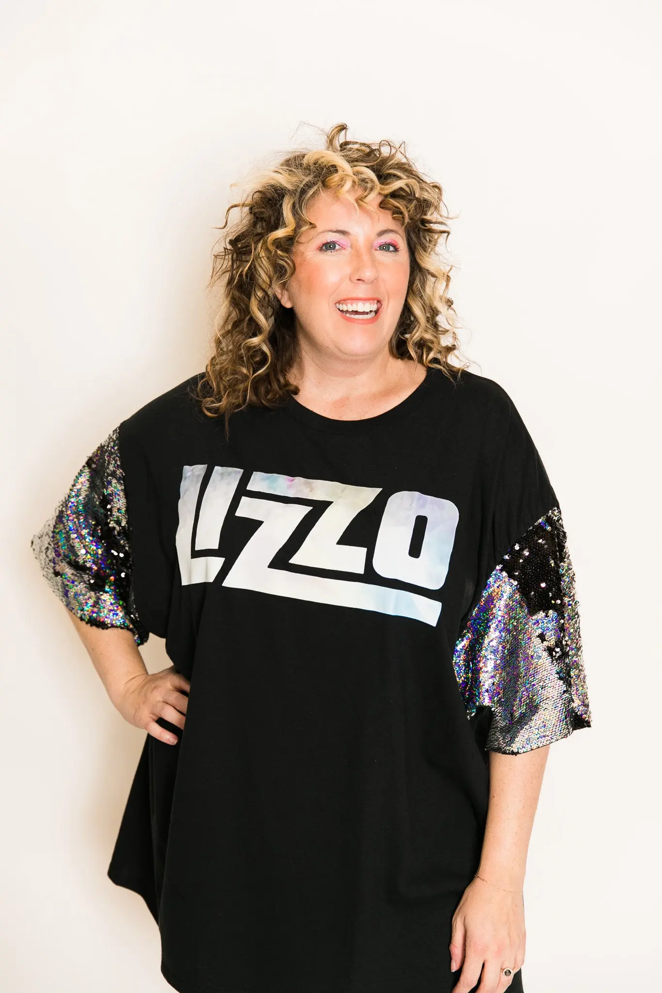 Lizzo Black and Silver Sequin Sleeve Party Tee