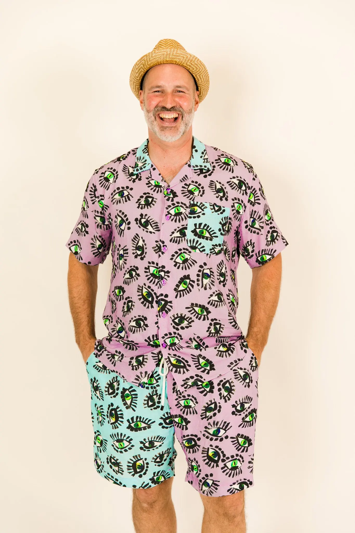 Get ready for the summer set of your daddy dreams. This fun button-down shirt is statement-making and will be sure to turn heads. Made in a comfortable, breathable fabric it is lightweight but not light on style. The custom fabric ensures you will stand out in a crowd. This is not your dad's button down shirt, it's your daddy's button down shirt. Looking for a more cropped style? Check out our Baddie button-down.
