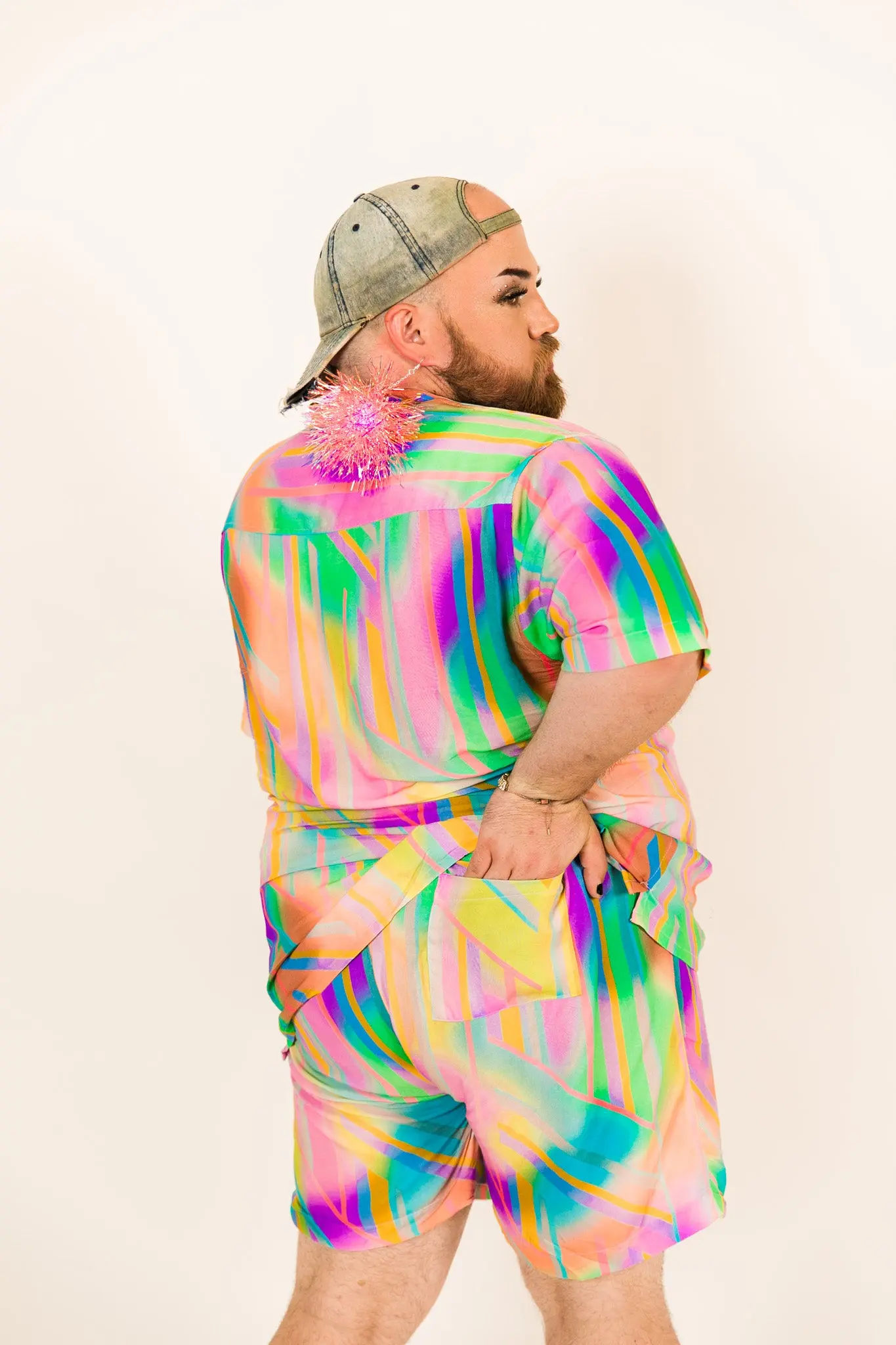 Get ready for the summer set of your daddy dreams. This fun button-down shirt is statement-making and will be sure to turn heads. Made in a comfortable, breathable fabric it is lightweight but not light on style. The custom fabric ensures you will stand out in a crowd. This is not your dad's button down shirt, it's your daddy's button down shirt. Looking for a more cropped style? Check out our Baddie button-down.