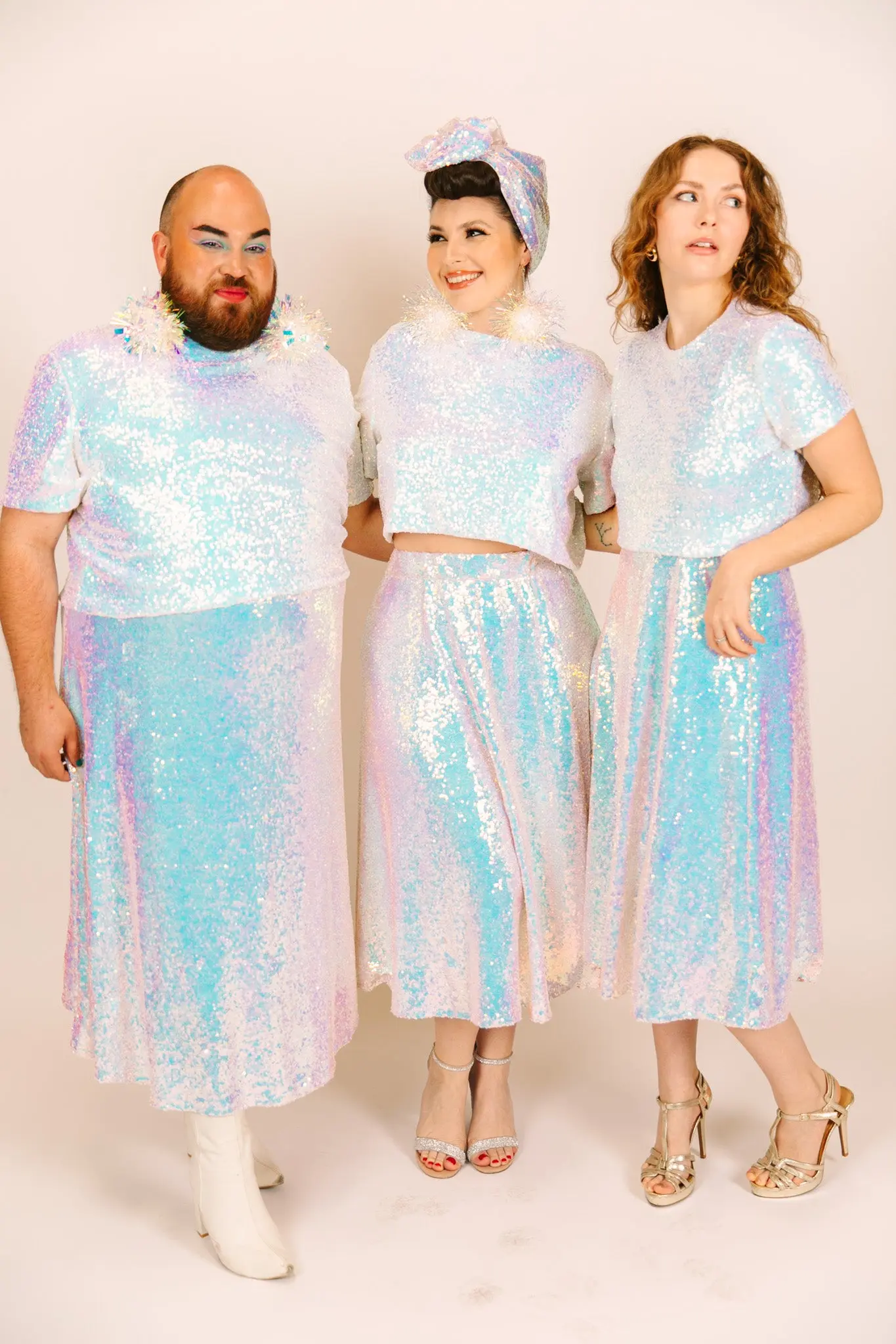 This perfect sequin statement will be sure to add a little shine to your style. Ultra comfortable 4 way jersey stretch lining will have you forgetting you are wearing sequins and help you to dance the night away. The sequins on mesh are stretchy for the perfect comfortable fit.